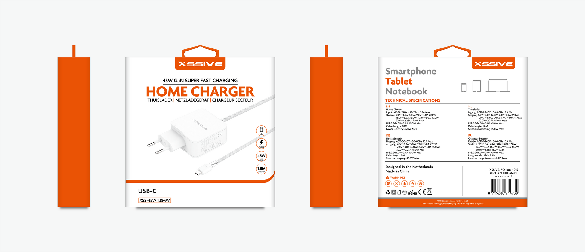 Ervaar ultieme snelheid en efficiëntie met de Xssive XSS-45W 1.8MW. Dankzij de geavanceerde GaN-technologie levert deze ultracompacte oplader tot 45W vermogen voor razendsnel opladen van smartphones, tablets, laptops en meer – allemaal in een licht en krachtig design.